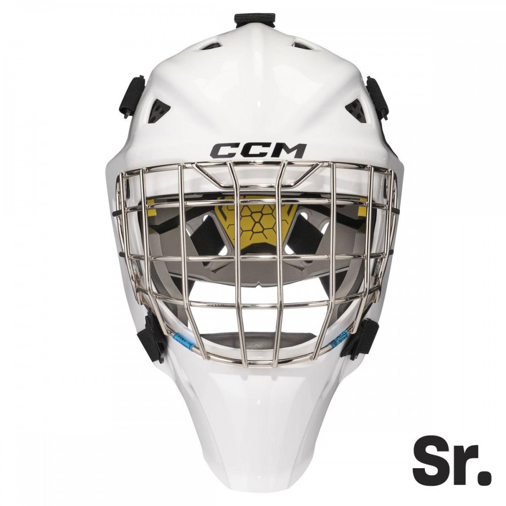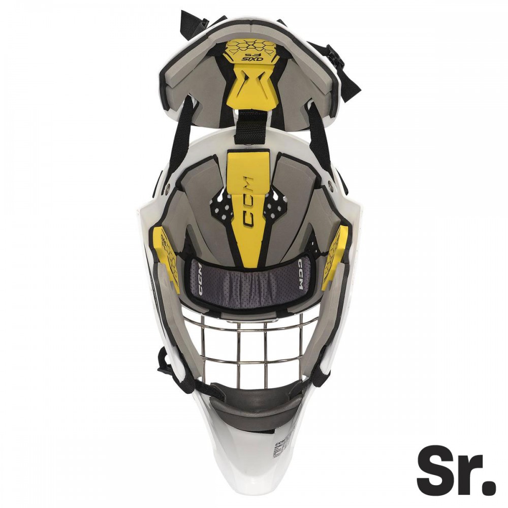 A CCM AXIS F5 junior kapusmaszk segít a fiatal kapusoknak magabiztosan védeni a kaput. Az új héjszerkezete hatékonyan veri vissza a korongot, miközben az új, gyerekeknek és szülőknek tervezett pántállító rendszer könnyen beállítható. A többrétegű VN habbélés kényelmes viseletet biztosít, és az új szellőzőrendszer segít hűvösen tartani a kapust. A szénacél rács úgy van elhelyezve, hogy segítse a kapusoknak követni a korongot, miközben teljes védelmet nyújt a feléjük repülő lövések ellen.